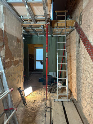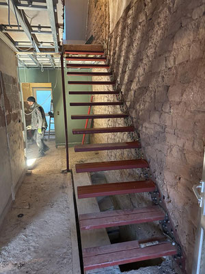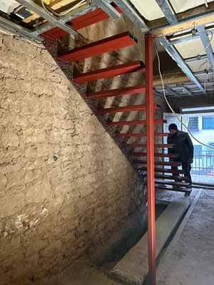 Die bestehende Treppenanlage wurde vollständig demontiert und durch eine maßgefertigte Kragarmtreppe ersetzt.