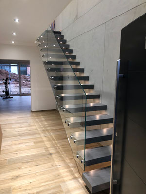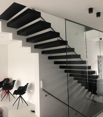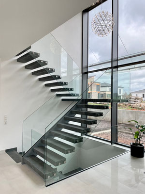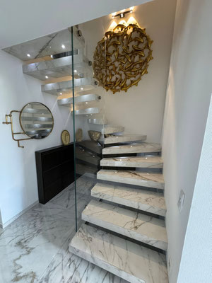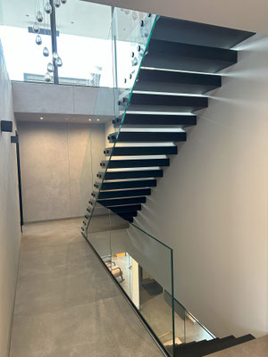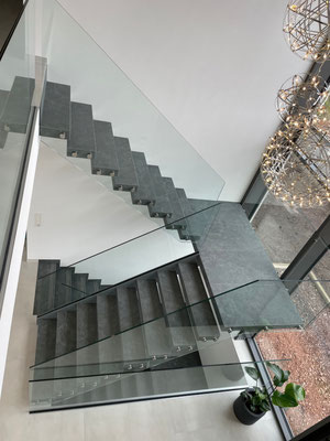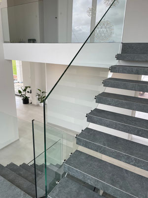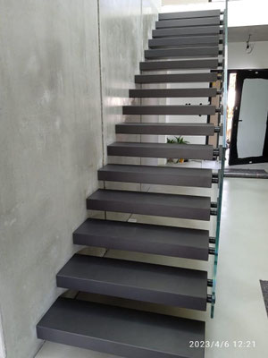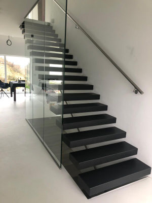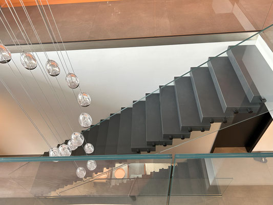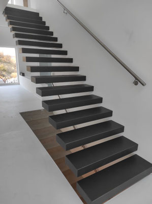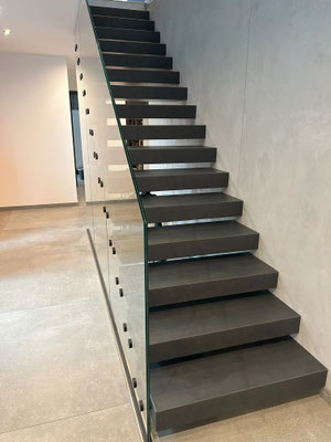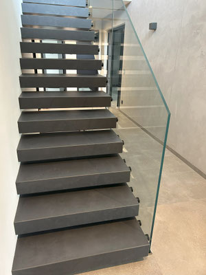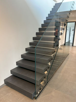 Auf Wunsch können wir die Stufen für Ihre Kragarmtreppe auch aus dem von Ihnen bereitgestellten Material fertigen – zum Beispiel aus Ihren eigenen Keramikfliesen. So lassen sich besondere